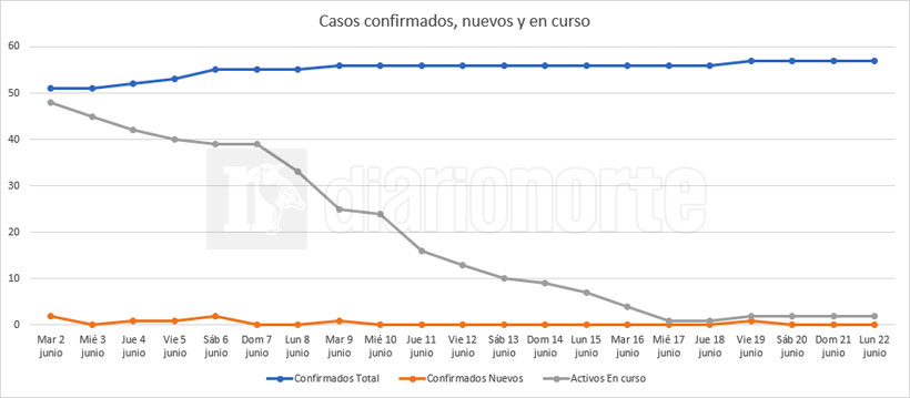 Con estos tres casos, son 36 las personas cursando la enfermedad en el municipio (casos activos). Todos los contactos cercanos están siendo monitoreados. El número de casos activos varía diariamente, según el alta de pacientes recuperados.