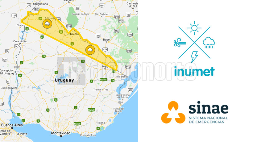 INUMET EMITIÓ ALERTA AMARILLA PARA DEPARTAMENTOS DEL NORTE