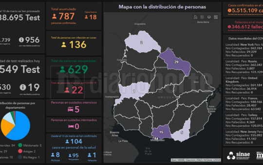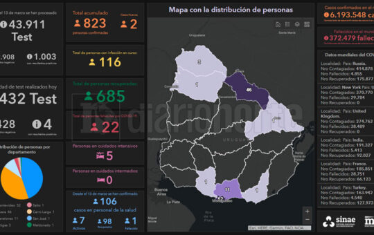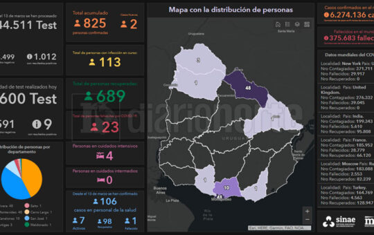Según el informe diario del Sistema Nacional de Emergencias (SINAE), 116 personas padecen COVID-19 en ocho departamentos de Uruguay, cinco...